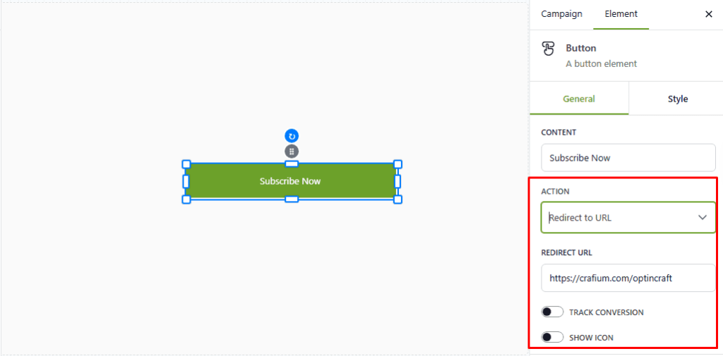 The Button Element in OptinCraft allows you to create clickable call-to-action buttons inside your popups. You can use it to redirect visitors, close popups, or guide users to the next step in your campaign.