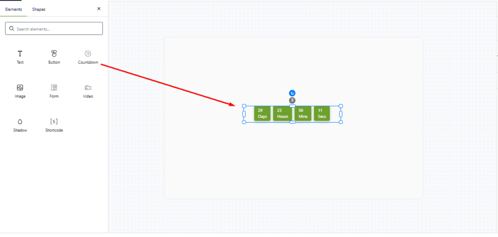 - Drag and drop the Countdown Element into your design.
