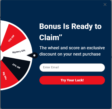 Gamified popups add an element of fun or interactivity to increase engagement. These often include features like spin-to-win wheels, quizzes, scratch cards, or small challenges that reward users with discounts or prizes.